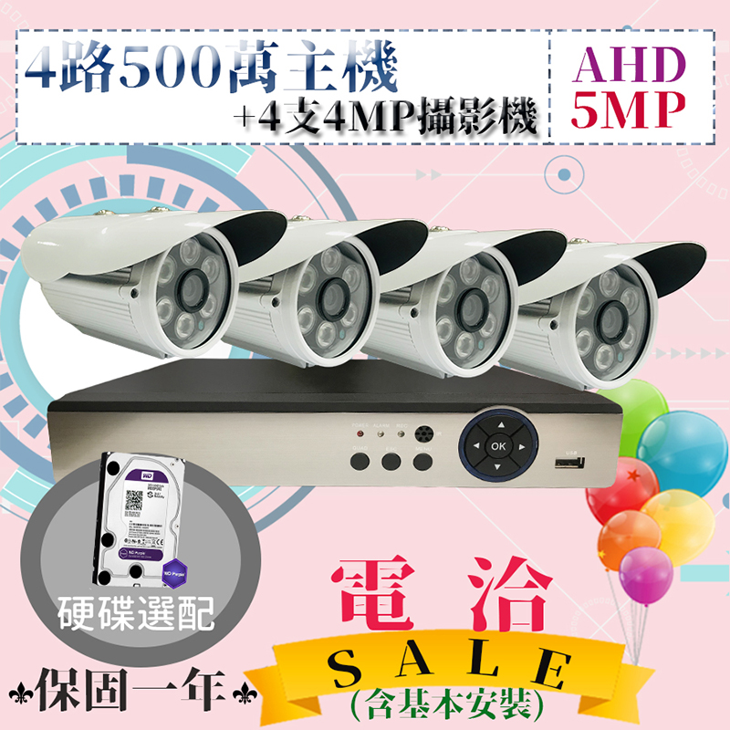 主機採五合一系統:AHD/TVI/CVI/IPC/960H 具有H.264+的壓縮格式~ 具有移動偵測/手機上報/錄影回放/遠端監控 等多種功能~ 自己的安全 自己一手掌控!!! ~攝影機管狀/半球 任您選擇 ~ 攝影機鏡頭為SONY鏡頭/四百萬, 畫質高清晰,低雜訊 採24小時監控 您的安全不漏洞 *管狀攝影機具有IP66防水技術 下雨沾水也不怕* 在人人網路的時代裡,不出家門,盡知天下事 相反地,不管您所在何處,也可隨時隨地掌控自家安全 手機/遠端監控及上報 方便更快速知道第一手監控消息 套裝內容物經濟實惠, 專業安裝及最重要的售後服務, 保固長達整整一年呦!!!!!! 不是 三個月
